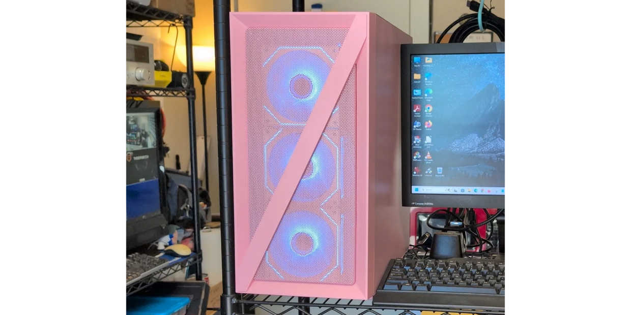 Here is a Pink Mid Tower Intel I5 10600KF 6 Core Windows 11 Workstation PC.